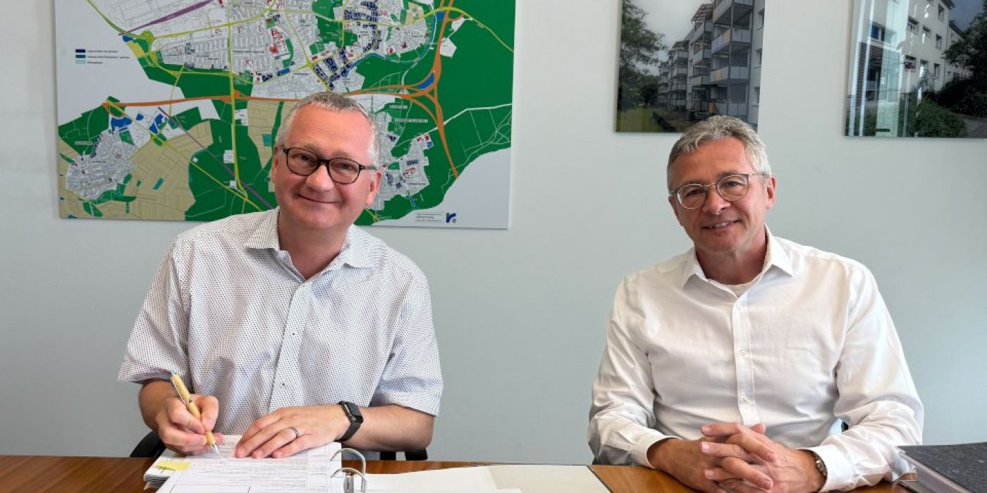 Rund 90 Prozent der Wohnungen werden barrierefrei sein, 40 Prozent sind öffentlich geförderte Mietwohnungen, 60 Prozent freifinanziert. „Unser besonderer Dank gilt dem Kooperationspartner Ed. Züblin AG, der die Planung in nur vier Monaten gemeistert und zur Bauantragsreife fertig gestellt hat“, erklären gewobau-Geschäftsführer Torsten Regenstein und Prokurist Thomas Steininger bei der Unterzeichnung des Bauantrages.